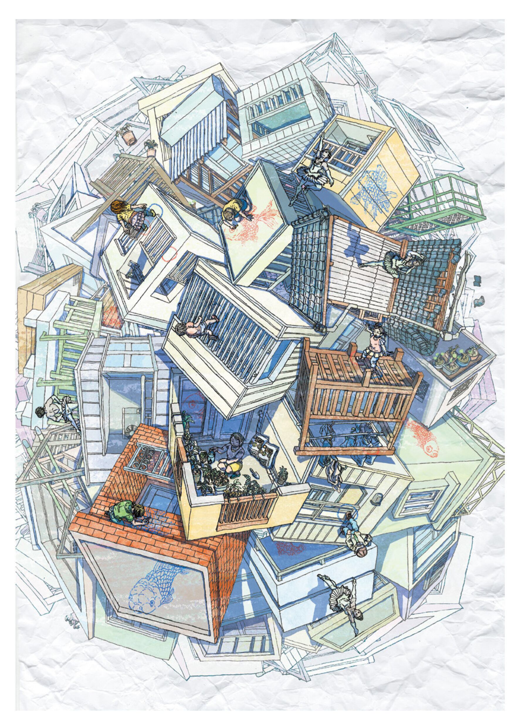 2023 FUTURE FASHION AWARD 三越伊勢丹主催する「未来思考のファッションデザインコンテスト」用の「空中で暮らす世界」のイラストを担当させて頂きました。