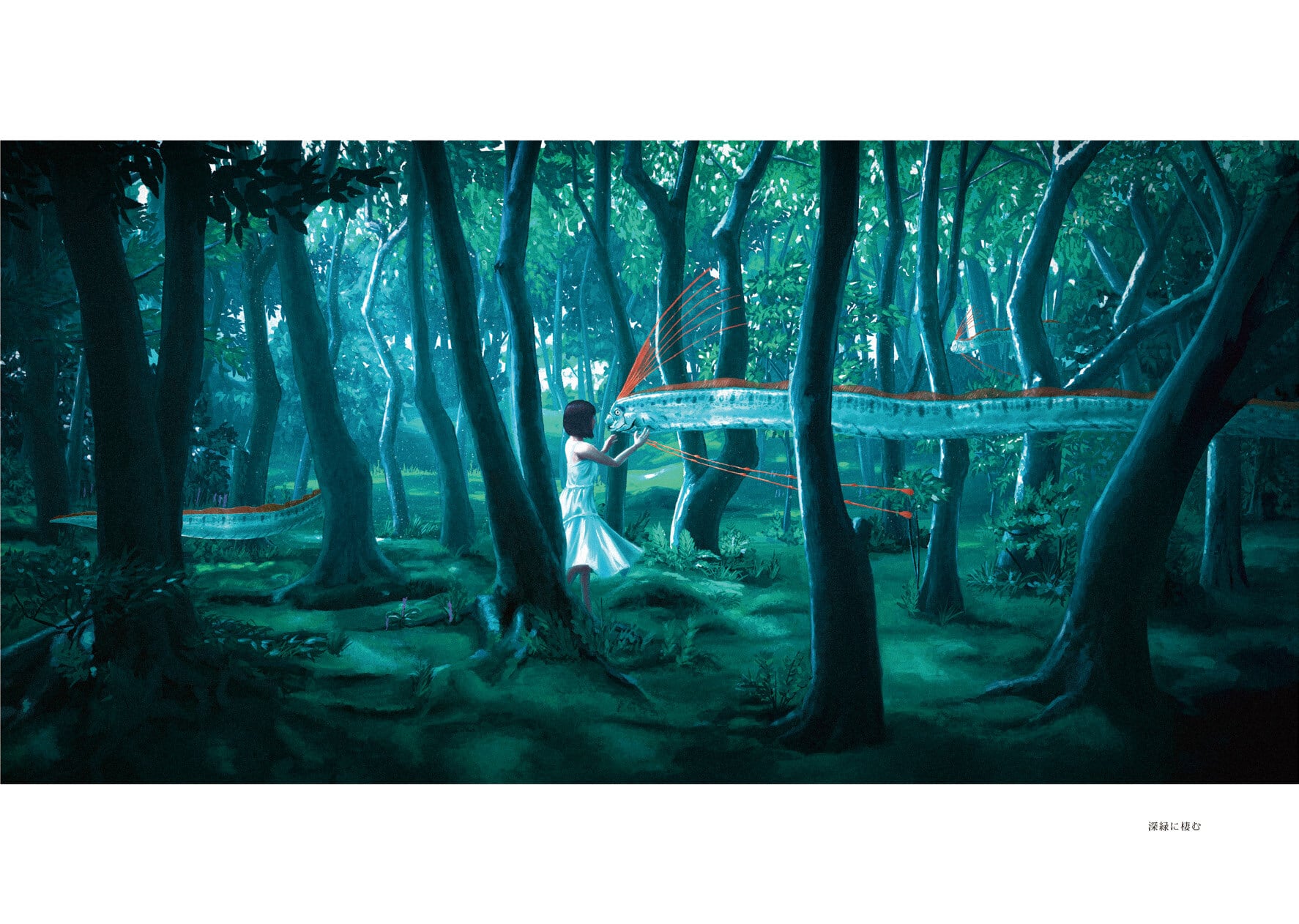 海や水の中の生き物が日常風景に現れ、宙を泳ぐ様を描いた作品集です。