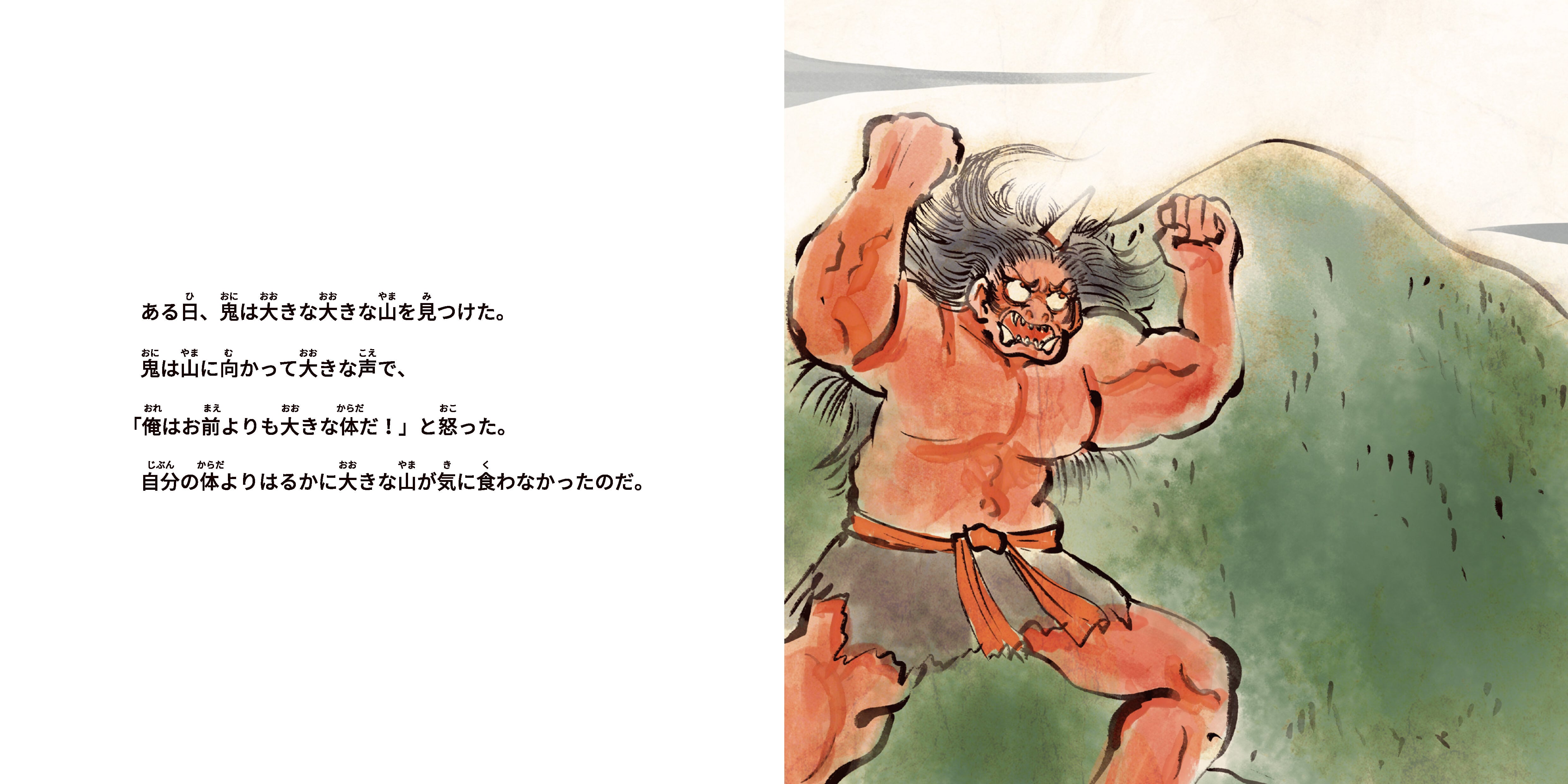 ある日、とても大きな鬼はとてもとても大きな山を見つけました。
