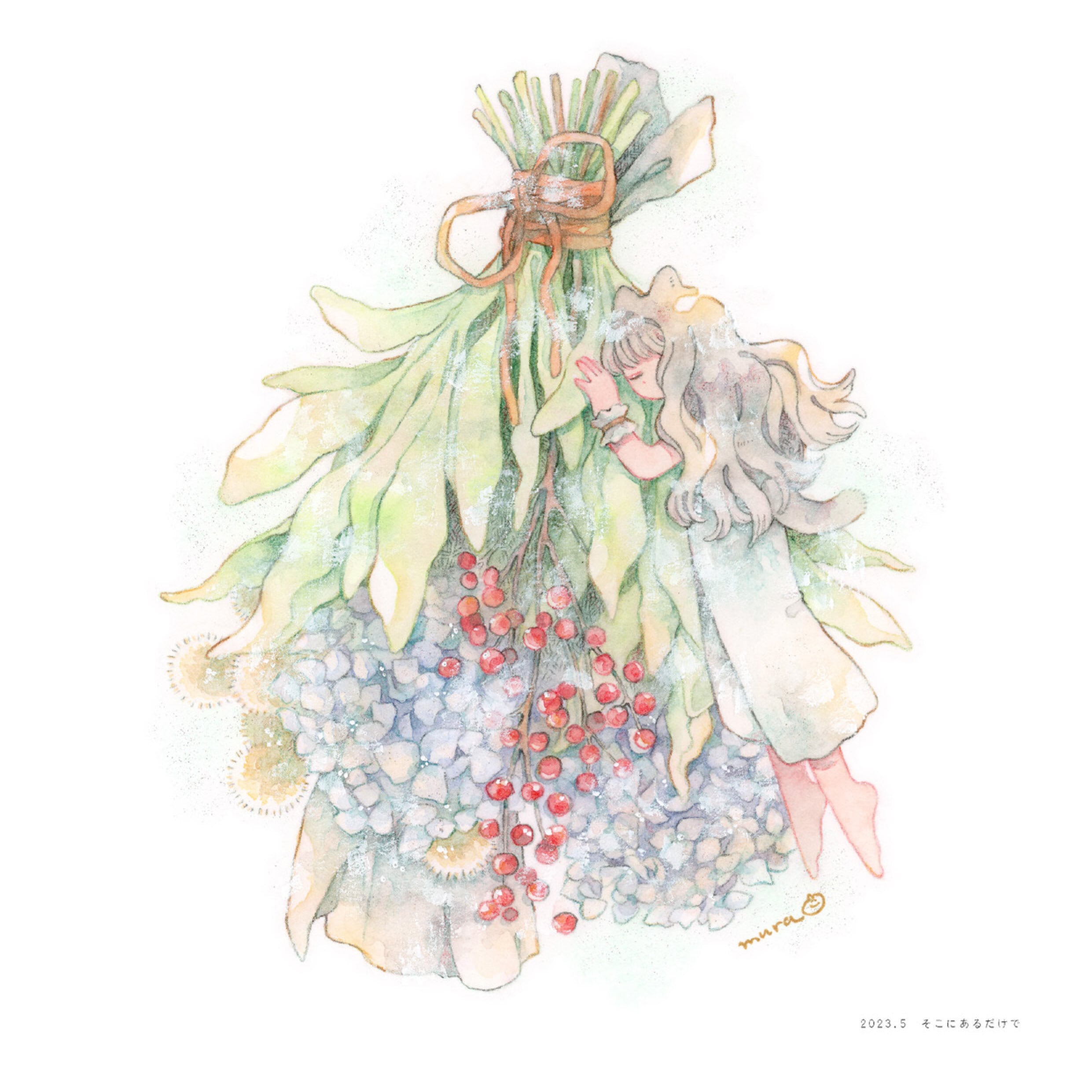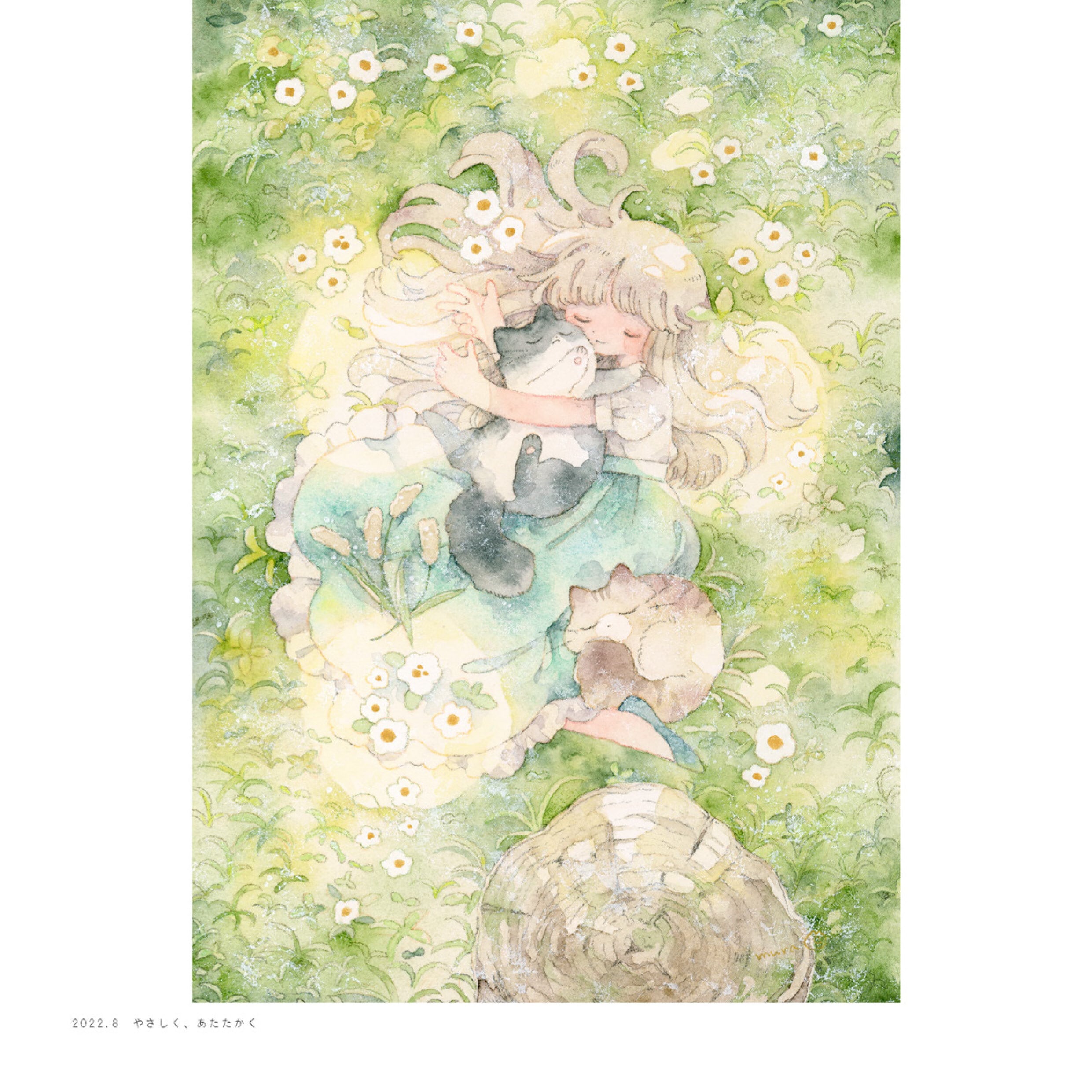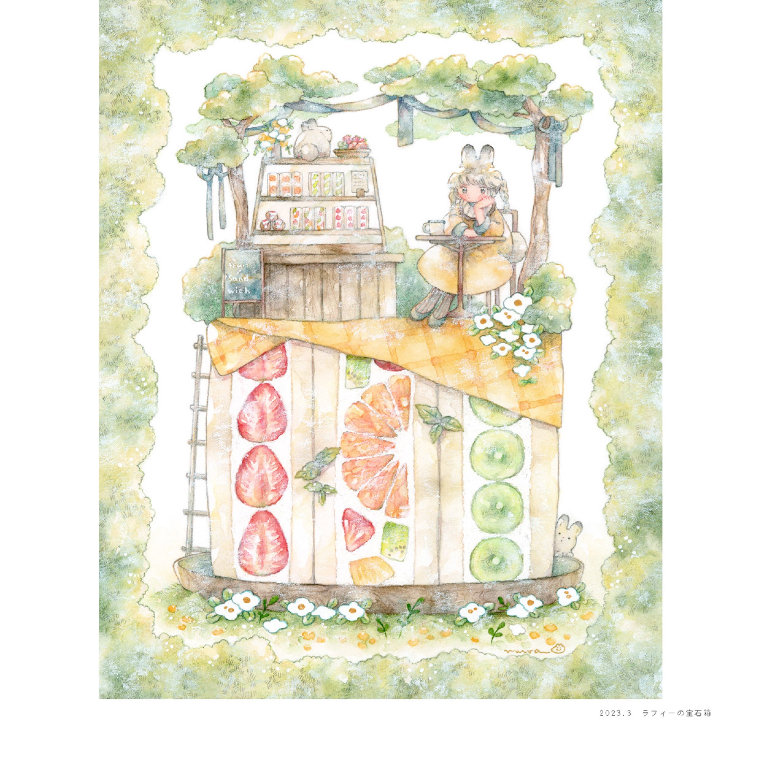 透明水彩や色鉛筆を使って、淡く穏やかな時間を描いています。